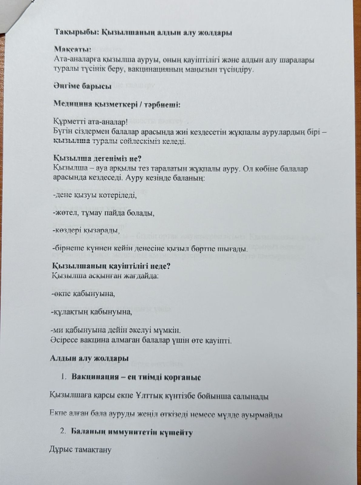 » "Қызылшаның алдын алу жолдары" ата-аналармен өткізілген түсіндірме жұмысы