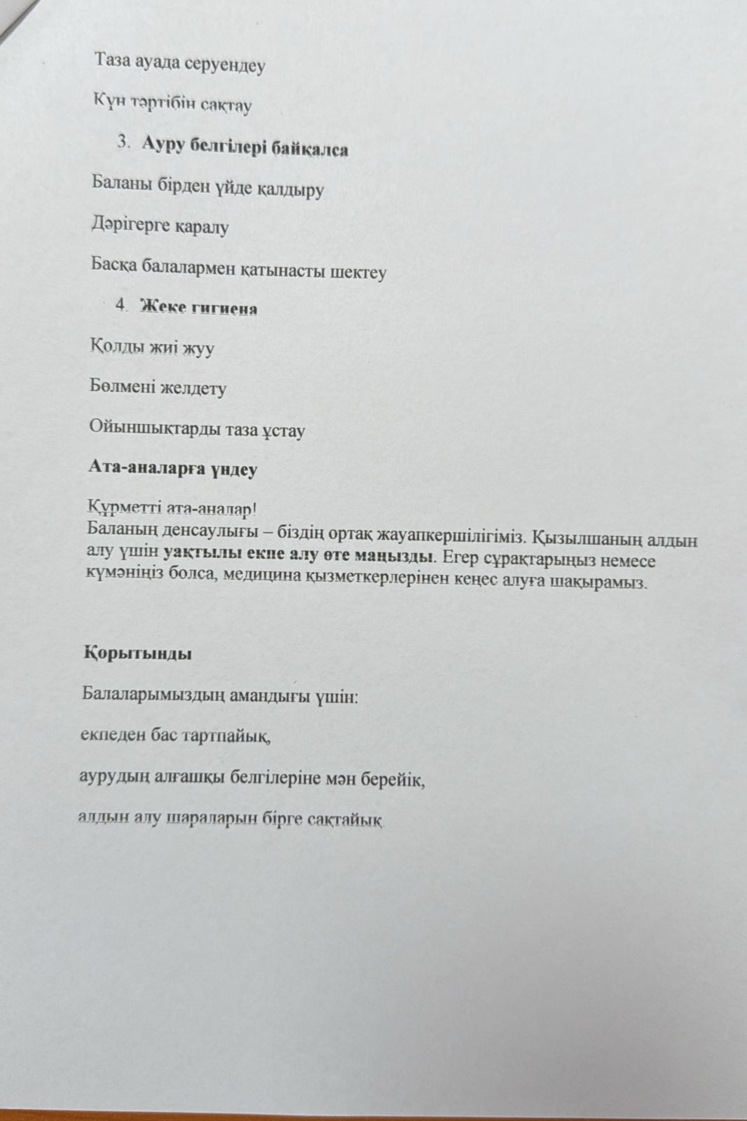 "Қызылшаның алдын алу жолдары" ата-аналармен өткізілген түсіндірме жұмысы
